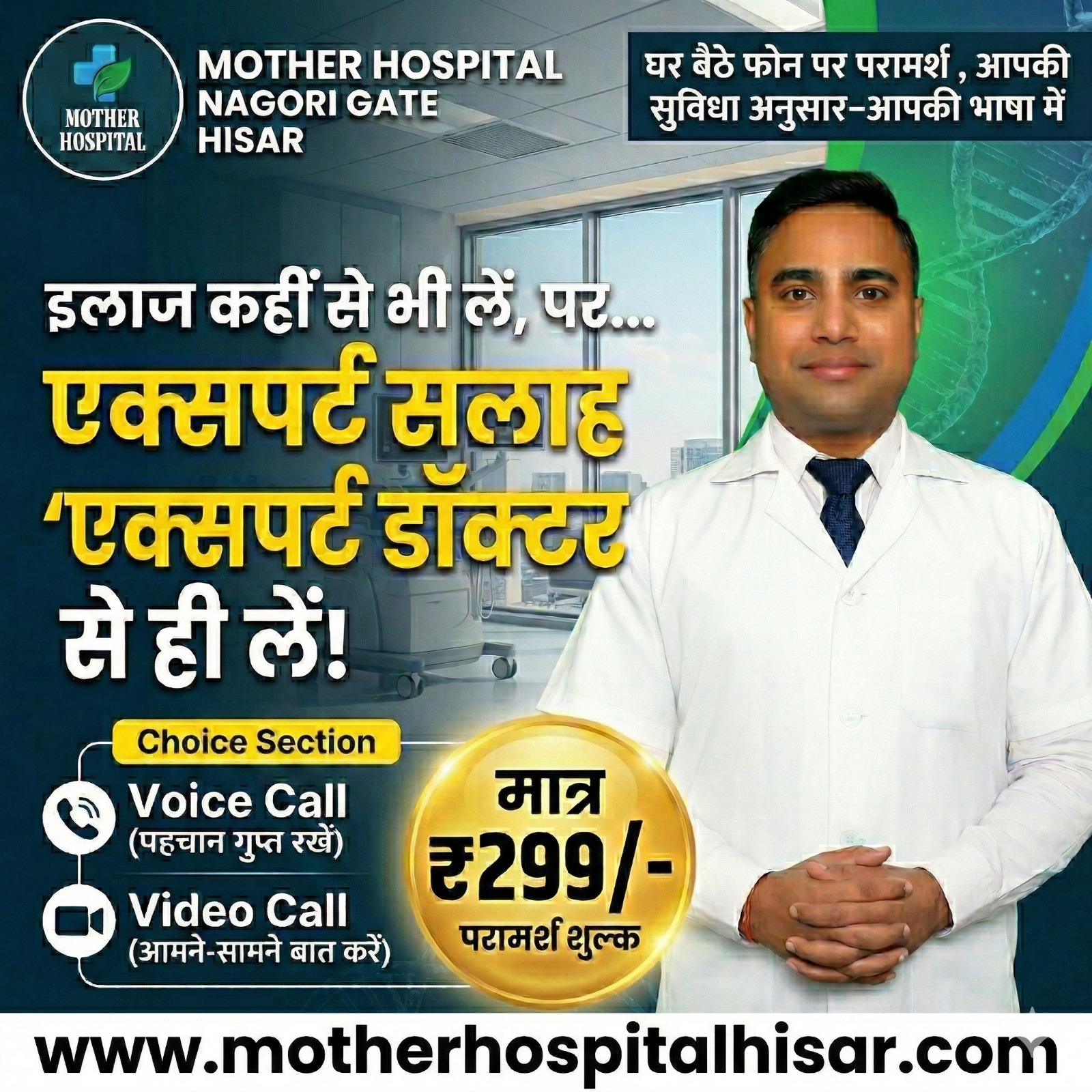 घर बैठे Senior Sexologist से फोन या वीडियो कॉल पर सलाह – मात्र ₹299 में | Mother Hospital Hisar